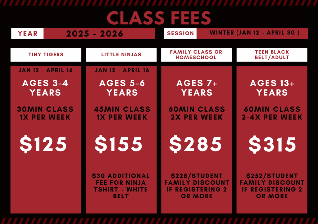 Fees are based on 13-14 week sessions (7 week for spring session)