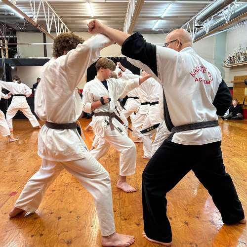 This 1-hour class (twice a week) builds physical skills, mental focus, and lifelong character traits like respect, discipline, confidence, and healthy conflict resolution. Students are grouped by belt rank to ensure steady progress, and the curriculum includes fundamental techniques, kata, point and weapon sparring, and practical self-defense—including when it’s appropriate to use their skills.